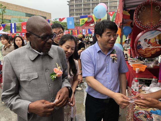 Students from various countries enthusiastically introduced their country's exceptional products and delicacies to the ambassadors, presented small gifts made by themselves, and invited the ambassadors to dance cheerfully together.